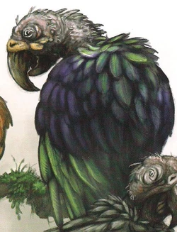 The Green Carrion Parrot (Caropsitticus verdens, meaning "green flesh parrot") are one of the many members that comprise Skull Island's Carrion Parrots. They are the second biggest Carrion Parrot just behind the Great Carrion Parrot, as they have a 3-4 foot long wingspan (0.9-1.2 meters).
