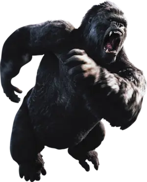 Kongs were extraordinarily tall ape-like primates with unmistakable similarities to ordinary gorillas. They could grow up to ~25 feet tall, had black fur and brown eyes, and walked on their knuckles or on all fours. Although mostly found walking on all four limbs, they were capable of rearing up on their feet, as seen when beating their chests. Like gorillas, the male of the species could grow a white patch of fur on its back, likely indicating dominance, as it does for silverback male gorillas. They possessed immense physical strength, presumably scaled up from their smaller counterparts, and were capable of jumping vertically, something that ordinary gorillas have not been seen doing.